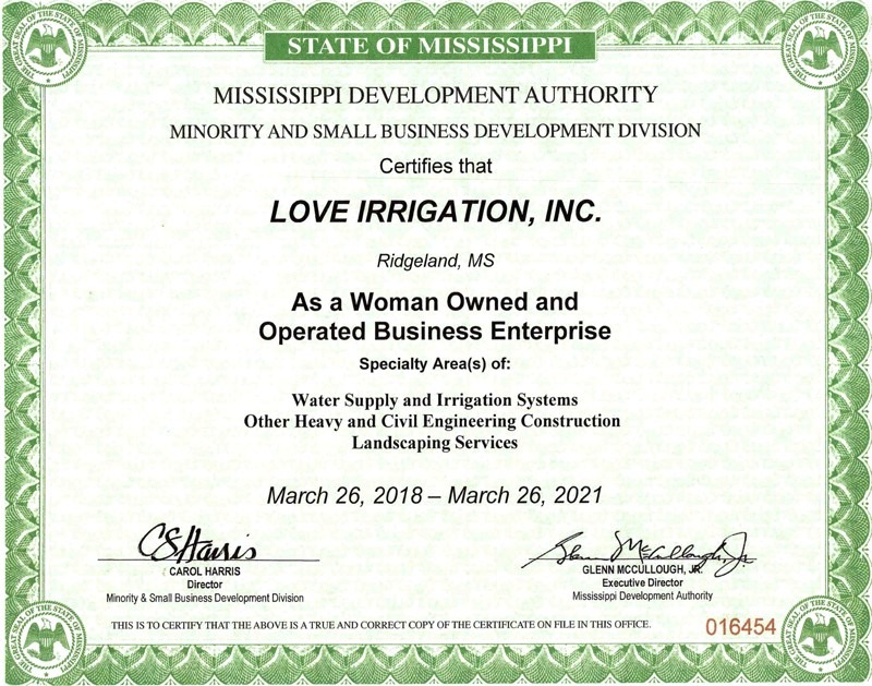 Love Irrigation is listed among the top 100 Irrigation contractors in the United States and has earned a number of competitive credentials.