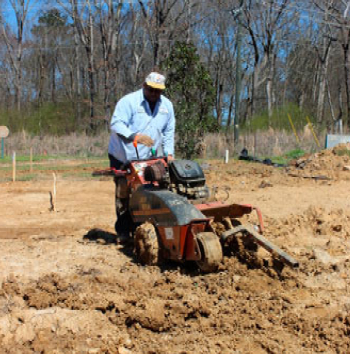 The trenches are tamped with a mechanical tamper and raked smooth.